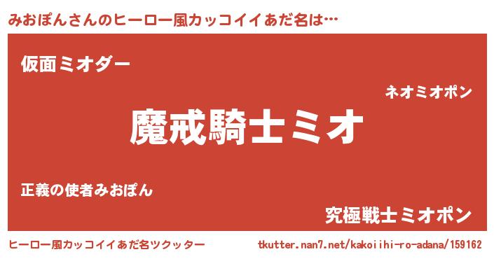 | 男性向けラノベタイトル風あだ名 | 『ダンジョンにみおぽんを求めるのは間違っているだろうか』 |