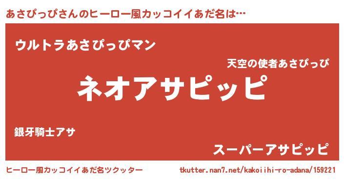 | 男性向けラノベタイトル風あだ名 | 『緋弾のアサピッピ』『あさぴっぴの憂鬱』 |