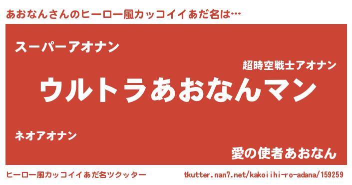 | 男性向けラノベタイトル風あだ名 | 『うちのあおなんが世界を掌握している!』 |