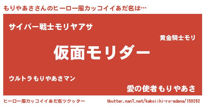 | 女子向けラノベタイトル風あだ名 | 『乙女ゲームの破滅フラグしかない悪役もりやあさに転生してしまった…』 |