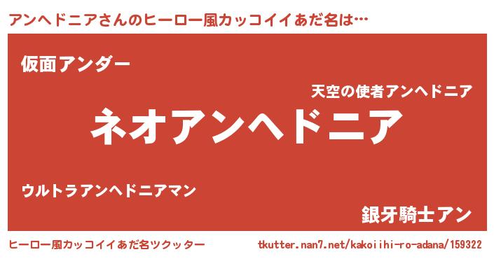 | 男性向けラノベタイトル風あだ名 | 『うちのアンヘドニアが世界を掌握している!』 |