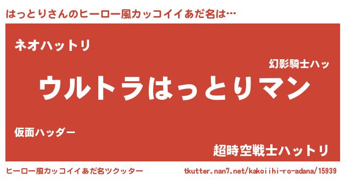 | 男性向けラノベタイトル風あだ名 | 『うちの娘の為ならば、俺はもしかしたらはっとりも倒せるかもしれない。』 |
