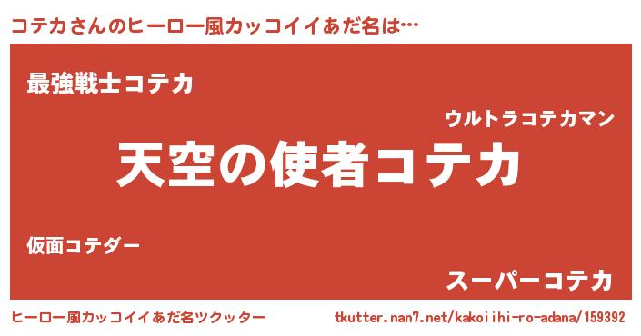 | 女子向けラノベタイトル風あだ名 | 『死神コテカの再婚』『闇のコテカ』 |
