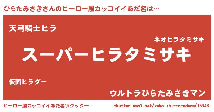 | 欧米人風あだ名 | 『ひらたみさき・ステッグマイヤー』 |