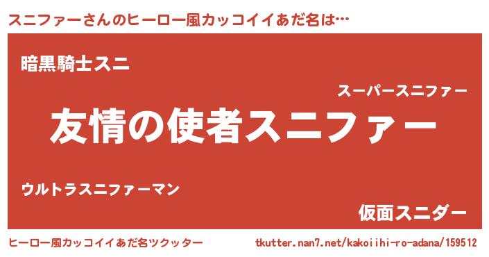 | 男性向けラノベタイトル風あだ名 | 『おまえをオタクにしてやるから、俺をスニファーにしてくれ! 』 |