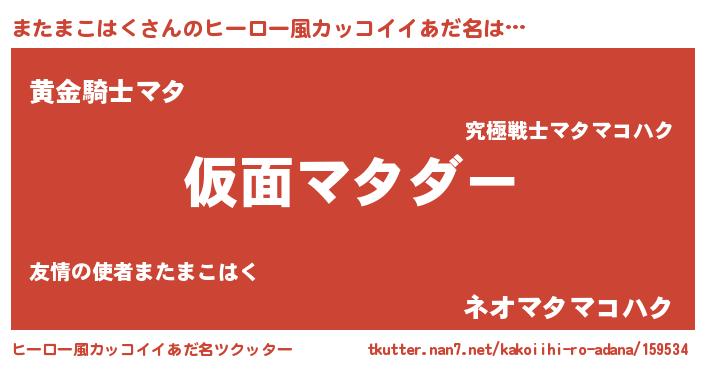 | 男性向けラノベタイトル風あだ名 | 『マタマコハクスレイヤー』 |