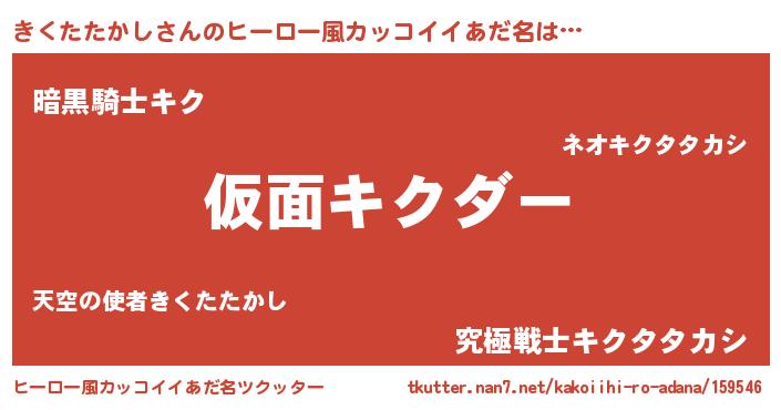 | 男性向けラノベタイトル風あだ名 | 『この素晴らしい世界にきくたたかしを!』 |