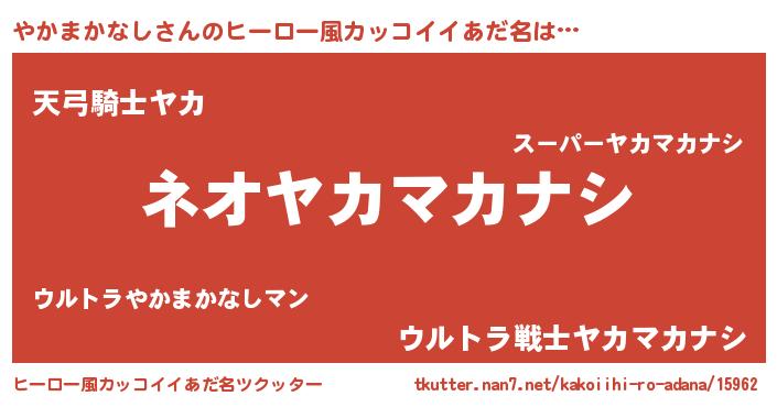 | ヘコむあだ名 | 『やかまかなし(遠い目)』『やかを』 |