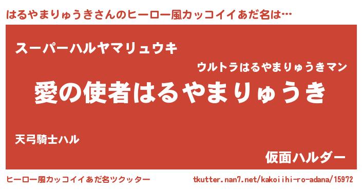 | 男性向けラノベタイトル風あだ名 | 『ノーゲーム・ノーハルヤマリュウキ』 |