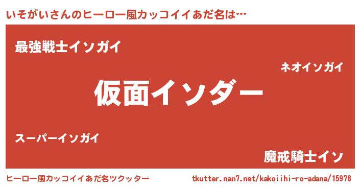 | 意味不明あだ名 | 『住所不定無職いそがい(5歳)』 |