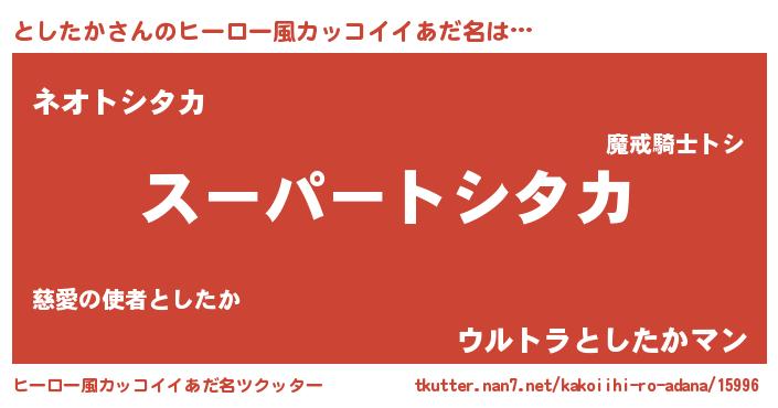 | 胡散臭い通販商品みたいなあだ名 | 『必ず成功するブレスレット…その名も「としたか」』 |