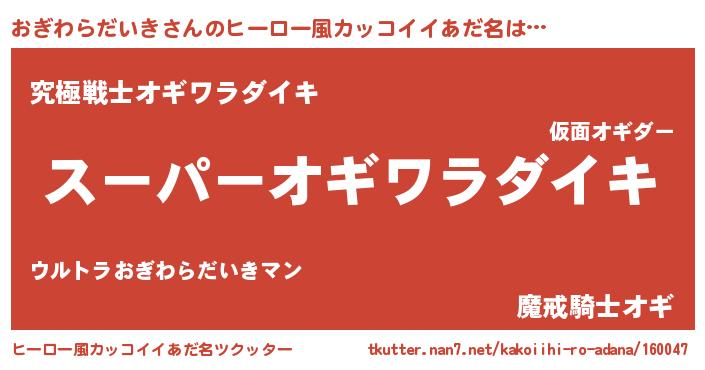 | ファンタジー風あだ名 | 『オギフェル』『ゼオギトゥ』 |