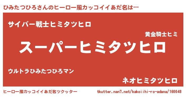 | 男性向けラノベタイトル風あだ名 | 『ひみたつひろに滅ぼされるだけの簡単なお仕事です』 |