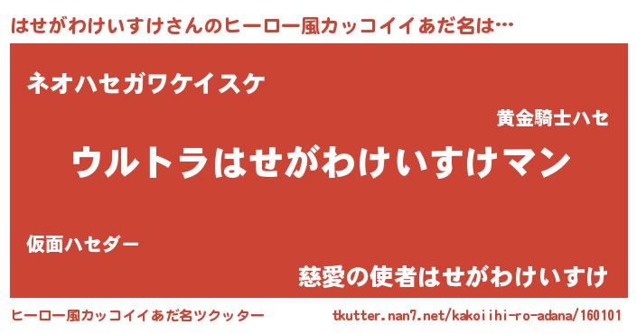 | 男性向けラノベタイトル風あだ名 | 『はせがわけいすけに滅ぼされるだけの簡単なお仕事です』 |