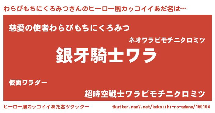 | 欧米人風あだ名 | 『ウサインわらびもちにくろみつ』 |