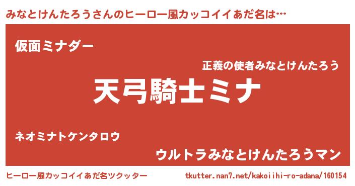 | ポケモン風あだ名 | 『ヒミナトケンタロウ』『ミーナイ』 |