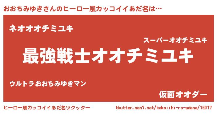 | 男性向けラノベタイトル風あだ名 | 『Re:おおちみゆきから始める異世界生活』 |
