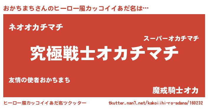 | 意味不明あだ名 | 『自称おかちまち』『永久保存おかちまち』 |