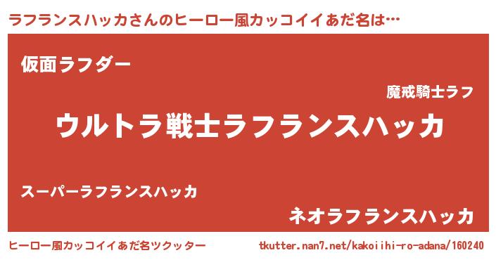 ラフランスハッカさんのヒーロー風カッコイイあだ名をツクッター!