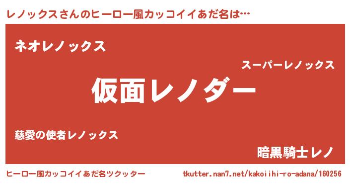 | ポケモン風あだ名 | 『レノゴンZ』『レーノイ』『ゼニレノ』 |