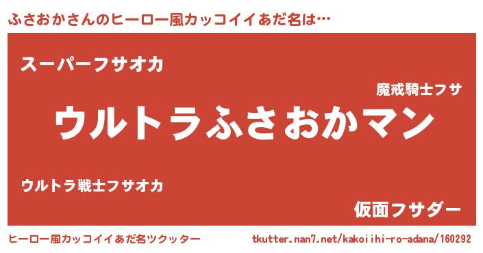 | 男性向けラノベタイトル風あだ名 | 『うちの娘の為ならば、俺はもしかしたらふさおかも倒せるかもしれない。』 |
