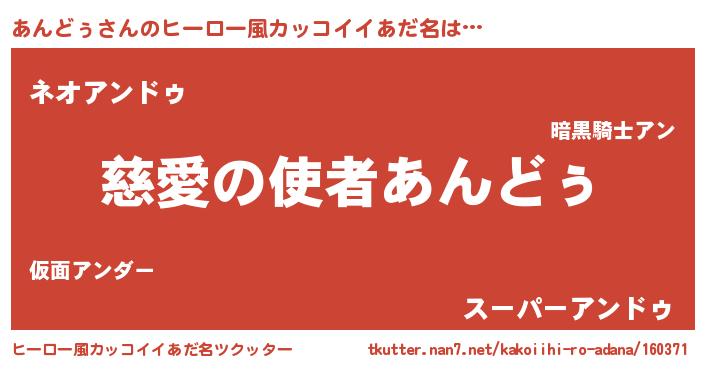| 女子向けラノベタイトル風あだ名 | 『死神あんどぅの再婚』 |