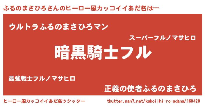 | 胡散臭い通販商品みたいなあだ名 | 『信頼と実績のサプリメント…その名も「ふるのまさひろ」』 |
