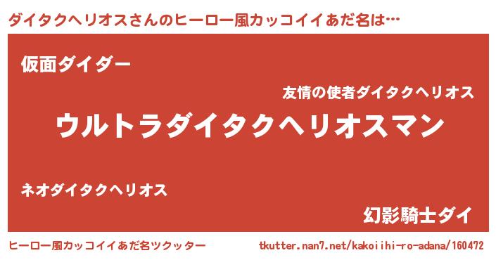 | ファンタジー風あだ名 | 『エターナルダイタクヘリオスー』 |