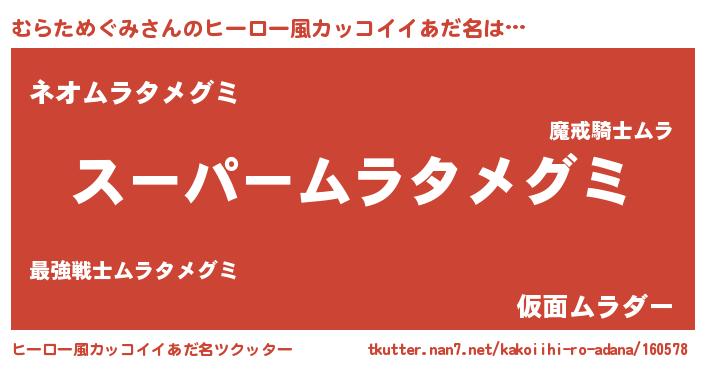 | ヘコむあだ名 | 『むらっふぃ~』『むらためぐみ(笑)』 |