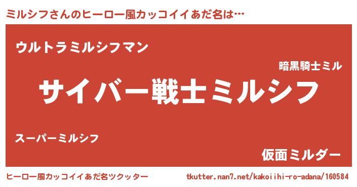 | 意味不明あだ名 | 『自称ミルシフ』『ミルシフフォーエバー』 |