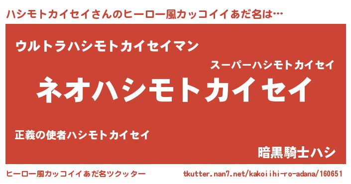 | 意味不明あだ名 | 『永久保存ハシモトカイセイ』 |