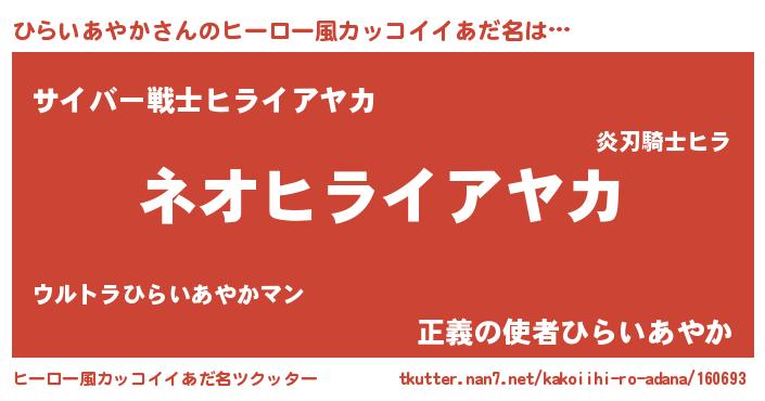| 胡散臭い通販商品みたいなあだ名 | 『来世でも幸せになれる健康食品…その名も「ひらいあやか」』 |