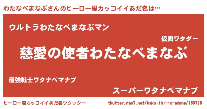 | 男性向けラノベタイトル風あだ名 | 『ノーゲーム・ノーワタナベマナブ』 |