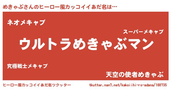 | 自動車の名前っぽいあだ名 | 『メクア』『デミメ』『メンR』 |