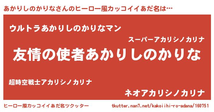 | 女子向けラノベタイトル風あだ名 | 『あかりしのかりな恋絵巻』 |