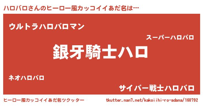 | ポケモン風あだ名 | 『ハロキング』『ヒハロバロ』 |