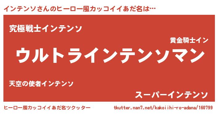 | 男性向けラノベタイトル風あだ名 | 『やはりインテンソの青春ラブコメはまちがっている 』 |