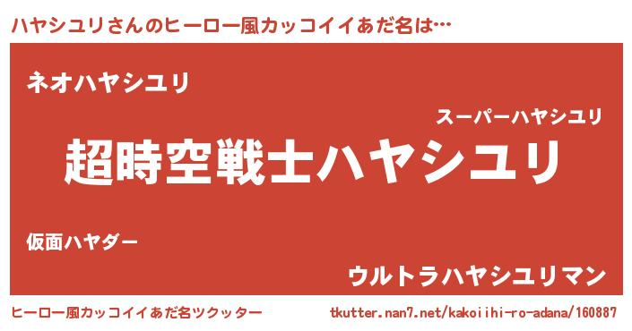 | 欧米人風あだ名 | 『ハヤシユリ・ステッグマイヤー』 |