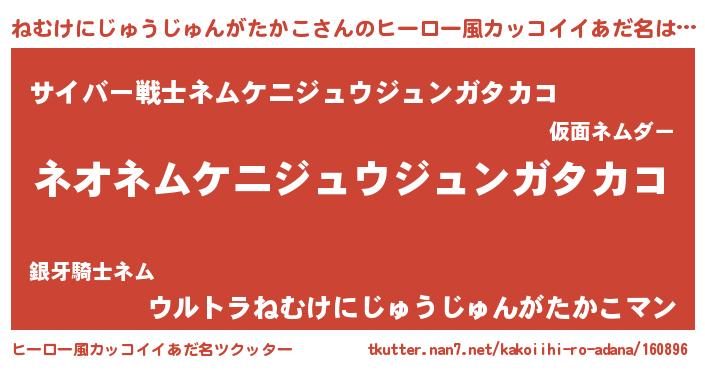 | 伝説のあだ名 | 『古より伝わる勇者ねむけにじゅうじゅんがたかこ』 |