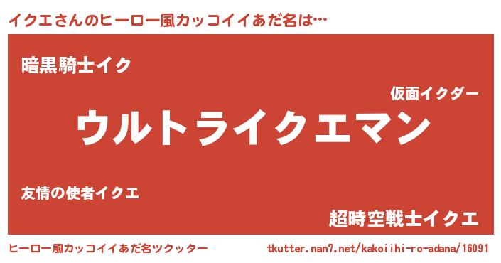 | 男性向けラノベタイトル風あだ名 | 『やはりイクエの青春ラブコメはまちがっている 』 |