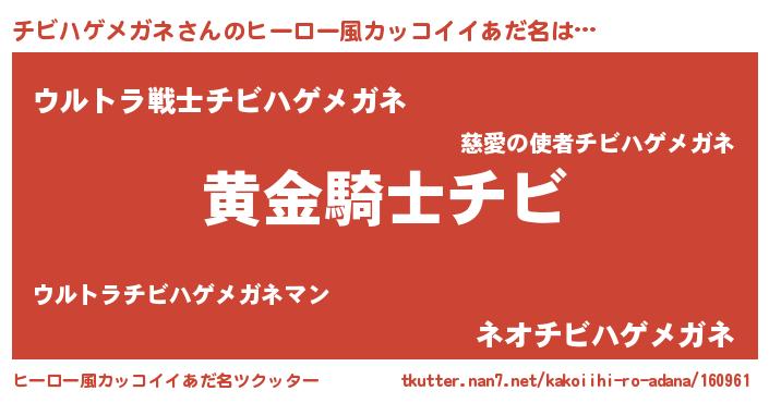 | 男性向けラノベタイトル風あだ名 | 『ダンジョンにチビハゲメガネを求めるのは間違っているだろうか』 |
