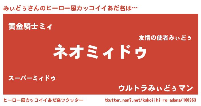 | 胡散臭い通販商品みたいなあだ名 | 『来世でも幸せになれる健康食品…その名も「みぃどぅ」』 |