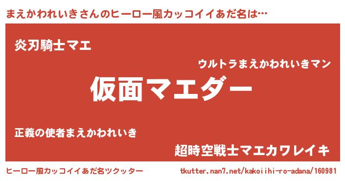 | ポケモン風あだ名 | 『マエキング』『マーエイ』 |