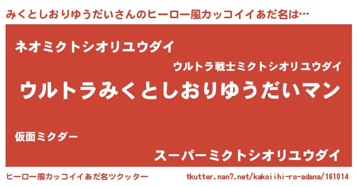 みくとしおりゆうだいさんのヒーロー風カッコイイあだ名をツクッター!