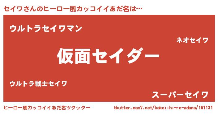 | 男性向けラノベタイトル風あだ名 | 『この素晴らしい世界にセイワを!』 |