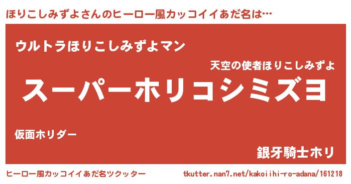 | 男性向けラノベタイトル風あだ名 | 『ほりこしみずよの憂鬱』 |