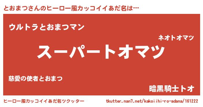 | 胡散臭い通販商品みたいなあだ名 | 『億万長者になれる霊験あらたかなお札…その名も「とおまつ」』 |