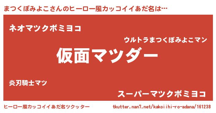 | 男性向けラノベタイトル風あだ名 | 『この素晴らしい世界にまつくぼみよこを!』 |