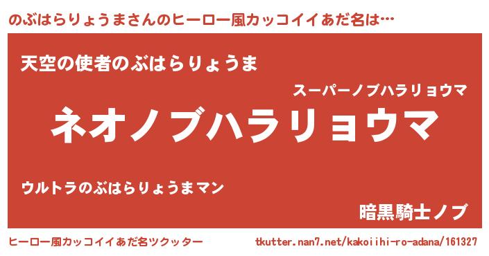 | ヘコむあだ名 | 『のぶはらりょうま(笑)』『のぶを』 |