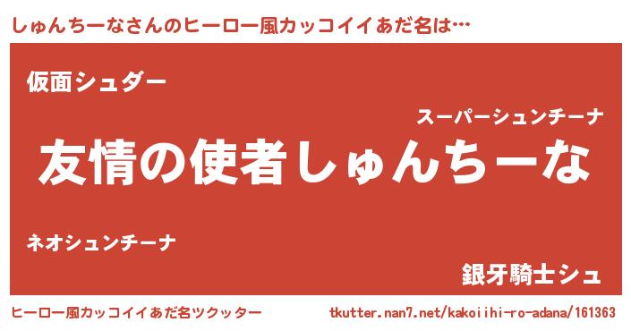 | 男性向けラノベタイトル風あだ名 | 『シュンチーナスレイヤー』 |